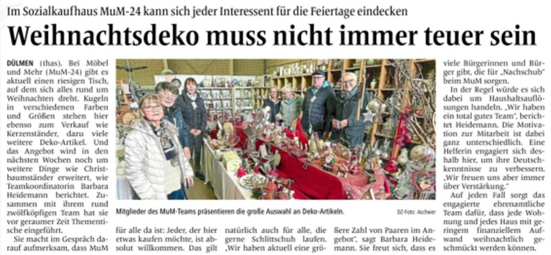 Ihr Dülmener Sozialkaufhaus für Möbel, Hausrat und Elektro-Kleingeräte zu sozialen Preisen.