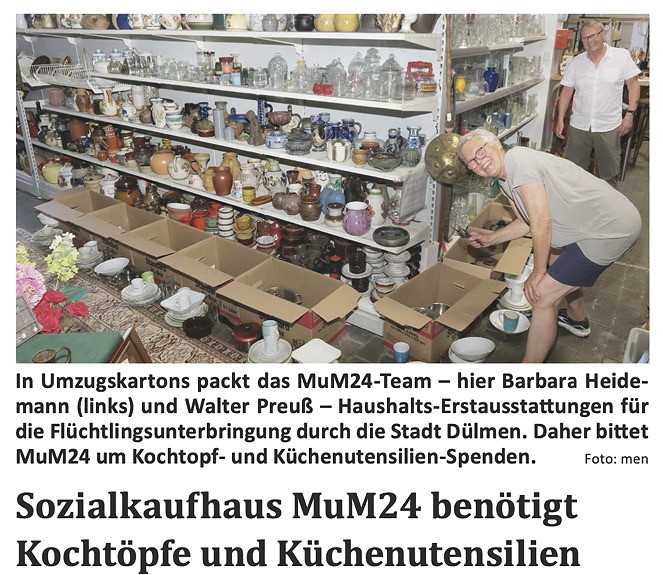 Ihr Dülmener Sozialkaufhaus für Möbel, Hausrat und Elektro-Kleingeräte zu sozialen Preisen.